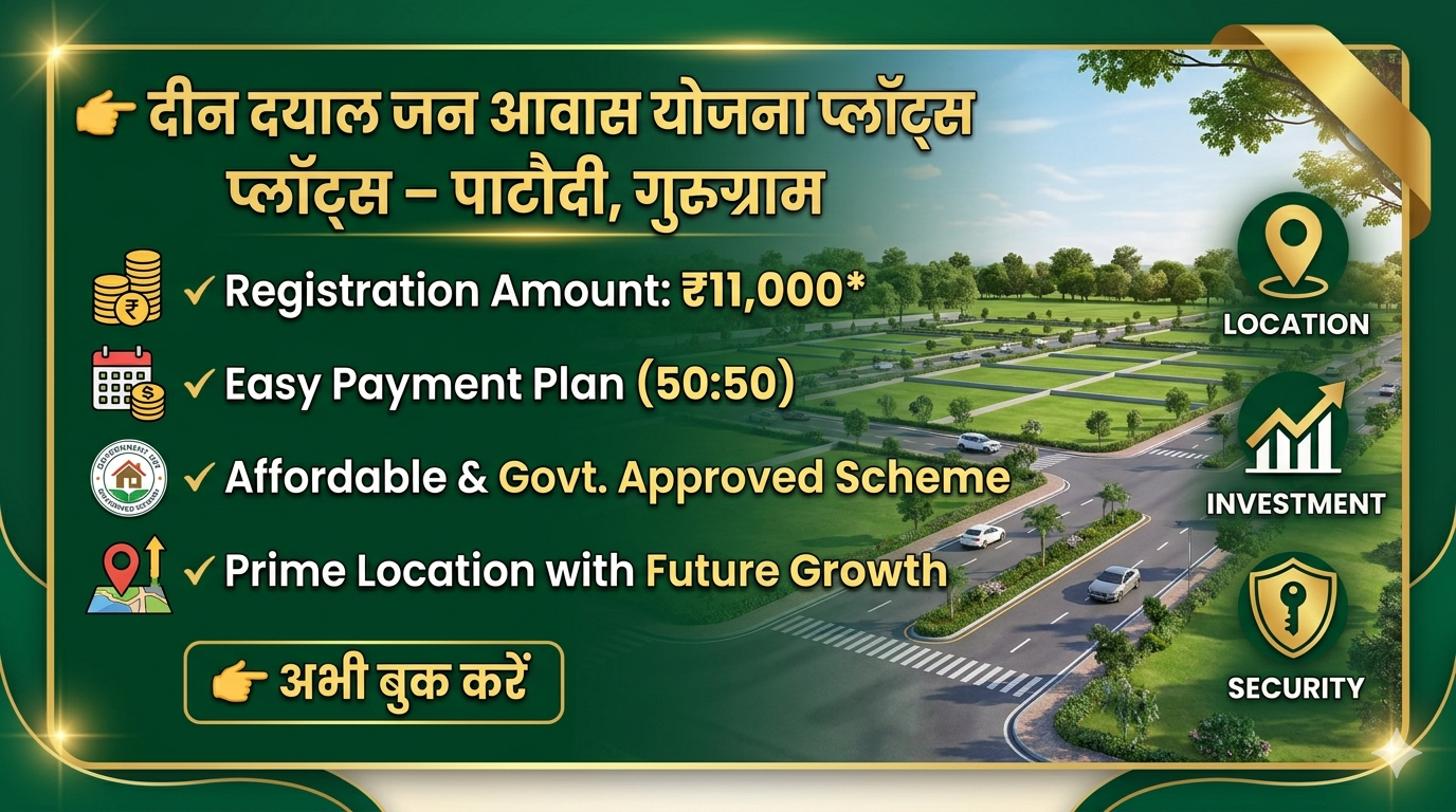 Deen Dayal Jan Awas Yojna Premier Residential Plots at Sector-3, Pataudi is a premium gated township in Pataudi, Greater Gurugram, offering DDJAY-approved residential plots. Surrounded by greenery and world-class amenities like a clubhouse, open gym, parks, and a school, it combines affordability with a serene lifestyle.